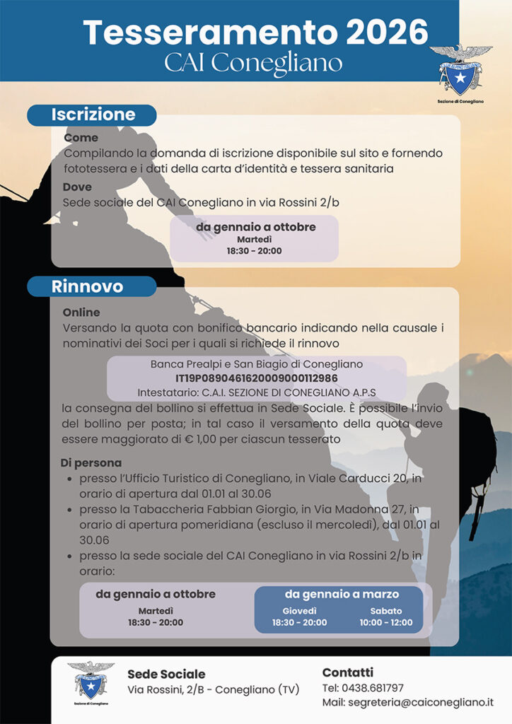 Informazioni su come effettuare l’iscrizione al CAI Conegliano.