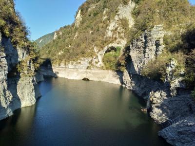 Lasciate le auto a Rocca di Arsiè, di fronte al lago artificiale del Corlo, costeggiando il lago ci dirigeremo ...al cimitero, nei cui pressi un ponticello minimalista ci consentirà di attraversare lo specchio d'acqua nel suo punto più stretto.